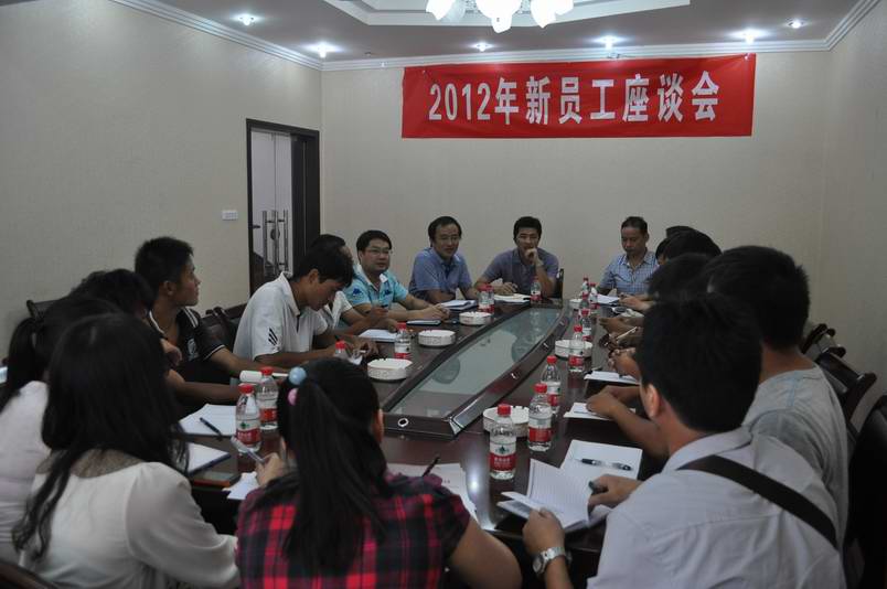 2012年8月25日下午,鐘鑫公司組織2012年新進員工召開入職之后的第一次交流談心會,為公司領導與新員工提供一次深入交流的機會,幫助新員工更好地了解公司管理理念,明確未來前進的方向。公司總經理王智高、支部書記王繁及部門負責人參加座談會。