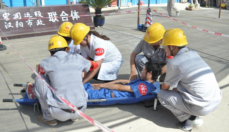 6月16日下午,鐘鑫公司安全演練比賽在玉龍路地鐵項(xiàng)目部舉行。三支來(lái)自地鐵項(xiàng)目部的隊(duì)伍參加了此次比賽。鐘鑫公司經(jīng)理王智高、書(shū)記王繁及集團(tuán)公司安全文明辦羅艷明部長(zhǎng)觀看了比賽。來(lái)自漢口北項(xiàng)目部、三號(hào)線六標(biāo)項(xiàng)目部和玉龍路地鐵項(xiàng)目部的三支參賽隊(duì)伍分別演練了工人高空跌傷、負(fù)高空墜落物體打擊、盾構(gòu)施工中機(jī)械傷害等科目。