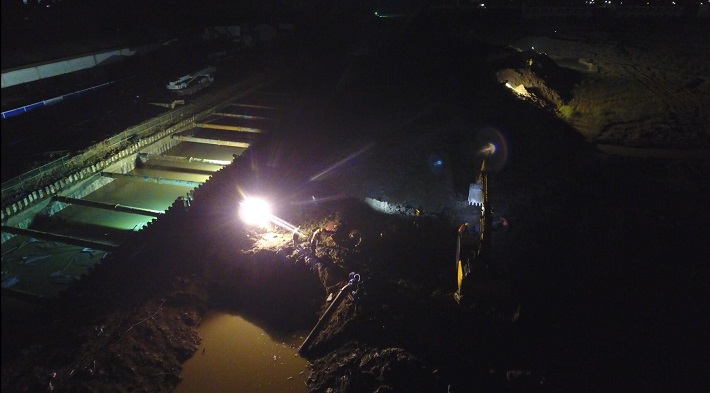 截止4月11日凌晨3點(diǎn),方紫微和6位項(xiàng)目經(jīng)理仍然堅(jiān)守一線。凌晨4點(diǎn),施工現(xiàn)場明渠已基本開挖通暢,險情終于得到了控制。4:30左右,大部分機(jī)械和施工人員已相繼慢慢退去,但方紫微仍獨(dú)自一人在現(xiàn)場細(xì)心察看,反復(fù)確認(rèn)險情切實(shí)得到控制后,直至凌晨5點(diǎn)才一個人慢慢離開。