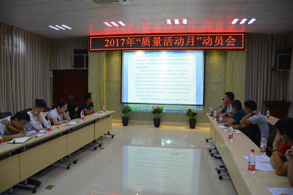 根據(jù)集團(tuán)公司“質(zhì)量活動月”方案的精神和內(nèi)容,為進(jìn)一步加強(qiáng)鐘鑫公司質(zhì)量品質(zhì),切實組織開展好2017年“質(zhì)量月”活動,努力在全公司營造“重視質(zhì)量、追求質(zhì)量、崇尚質(zhì)量、關(guān)心質(zhì)量”的氛圍,廣泛開展質(zhì)量安全宣傳活動,優(yōu)化質(zhì)量發(fā)展環(huán)境。鐘鑫公司2017年度“質(zhì)量活動月”活動動員會于2017年9月8日下午17時在公司一號會議室順利召開。鐘鑫公司總經(jīng)理涂軼銘,副總經(jīng)理徐浩,各項目經(jīng)理等共30余人參加本次動員會。會議由公司質(zhì)安部部長楊潔主持。