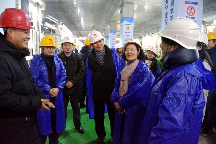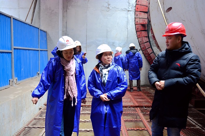隨后,張平帶領(lǐng)郭艷一行來(lái)到車(chē)站負(fù)一層,張平對(duì)5號(hào)線第七標(biāo)段施工過(guò)程中的技術(shù)重難點(diǎn)進(jìn)行了深入的講解,并帶領(lǐng)大家參觀了建設(shè)十一路站車(chē)站結(jié)構(gòu)成品保護(hù)和工程BIM建設(shè)情況,觀看了本工程建設(shè)全程的BIM技術(shù)運(yùn)用動(dòng)畫(huà)視頻。在車(chē)站負(fù)二層,郭艷一行參觀了漢陽(yáng)市政1號(hào)盾構(gòu)機(jī),張平就地鐵隧道盾構(gòu)機(jī)施工工藝進(jìn)行了言簡(jiǎn)意賅的講解,郭艷對(duì)漢陽(yáng)市政盾構(gòu)工藝和設(shè)備表示了贊揚(yáng)。