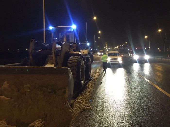 時(shí)間來到27日晚上23時(shí),在三環(huán)線白沙洲大橋——國博大道路段,漢陽市政鐘鑫公司的搶險(xiǎn)隊(duì)伍在漢陽市政集團(tuán)副總經(jīng)理、鐘鑫公司董事長方紫微的帶領(lǐng)和指揮下,克服白天一整天抗雪搶險(xiǎn)的疲憊感,緊急調(diào)度機(jī)械設(shè)備和搶險(xiǎn)人員,連夜前往搶險(xiǎn)路段奮戰(zhàn)3小時(shí),在寒冷冬夜順利完成了搶險(xiǎn)任務(wù)。