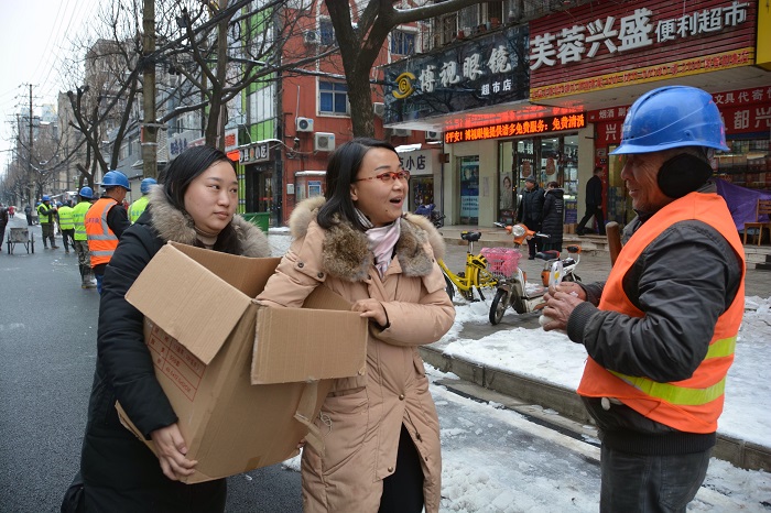 指針來到下午14時(shí),鐘鑫市政“鐵軍”在公司領(lǐng)導(dǎo)的帶領(lǐng)下,搶險(xiǎn)隊(duì)伍馬不停蹄地來到了國博大道。勘探完現(xiàn)場(chǎng)之后立即做出工作部署,將全體人員和機(jī)械按照路段劃分為三個(gè)路段進(jìn)行除雪破冰。下午的國博大道,寒風(fēng)凜冽,氣溫格外寒冷。好在鐘鑫公司的女同志們不顧嚴(yán)寒,精心準(zhǔn)備了充足的姜湯和熱騰騰的包子,為饑寒交迫的搶險(xiǎn)隊(duì)伍送來了熱飲和食物,姜湯驅(qū)除寒氣,食物更暖人心,隊(duì)伍在下午18時(shí)順利完成了清掃任務(wù)。期間,方紫微帶領(lǐng)部分人員火速馳援馬滄湖路進(jìn)行路面清掃,擼起袖子和大家伙兒一起干!清掃完畢的馬滄湖路煥然一新。