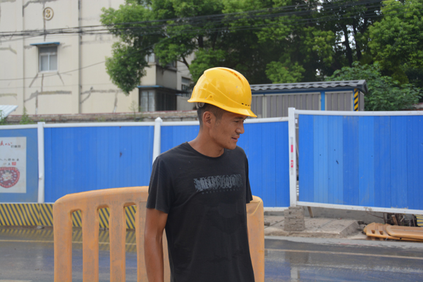 初次見面,徐軍濤害羞且寡言,目光所及都是施工作業(yè),他的專注會讓人覺得走近拍攝是對他的一種打擾。清晨亮起的微光仿佛是一天高強(qiáng)度工作開始的訊號,從訊號發(fā)出到進(jìn)入奮戰(zhàn)狀態(tài)之間無縫銜接。夏季武漢涼爽的早晨到9點就結(jié)束了。烈日炙烤下的施工現(xiàn)場讓人不禁感嘆時間過得真慢啊,真想一眨眼的功夫這暑氣便能褪去。晴空萬里,天上沒有一絲云彩,太陽把地面烤得滾燙。一陣熱風(fēng)刮來,從地上卷起一股熱浪使人感到陣陣窒息。雜草抵擋不住太陽的曝曬,葉子都卷成了細(xì)條,但徐軍濤卻像沒有感覺到這酷暑似的繼續(xù)工作。