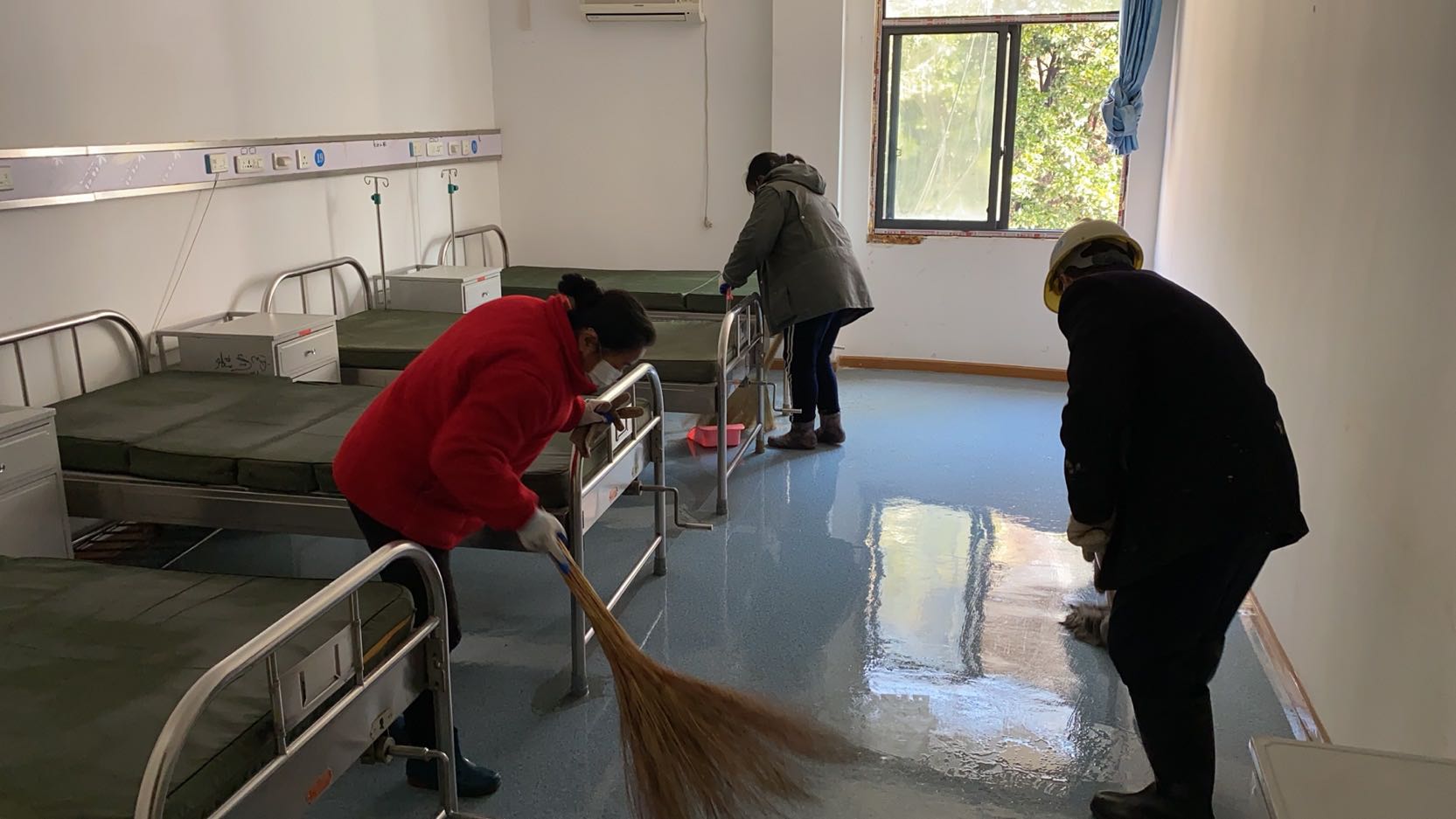 因蓮花湖醫(yī)院閑置已久,現(xiàn)場(chǎng)雜物零亂、灰漬累積,進(jìn)行全院大清理是搶建的首要工作,經(jīng)過日夜通宵奮戰(zhàn),在250余名勞務(wù)隊(duì)員辛勤的勞作下,16日清晨順利完成整個(gè)院區(qū)雜物清除、現(xiàn)場(chǎng)清洗等任務(wù);技術(shù)設(shè)計(jì)亦是爭(zhēng)分奪秒,技術(shù)人員連夜與設(shè)計(jì)單位進(jìn)行反復(fù)溝通確認(rèn),結(jié)合現(xiàn)場(chǎng)實(shí)際情況結(jié)合一次又一次地反饋修改,重新規(guī)劃布局醫(yī)院隔離病房設(shè)計(jì),為搶建任務(wù)爭(zhēng)取了寶貴時(shí)間;因閑置過久,醫(yī)院已斷水?dāng)嚯?,通水通電成為擺在建設(shè)人員急需解決的最大困難,時(shí)不可待,通過重新規(guī)劃水電路線,在管理人員有序的組織下,現(xiàn)場(chǎng)水電工晝夜搶建,目前已基本實(shí)現(xiàn)水電全通;隨著隔離板材等物資陸續(xù)到場(chǎng),后續(xù)隔離病房搭建正緊張有序展開,力爭(zhēng)于16日晚圓滿完成任務(wù)。