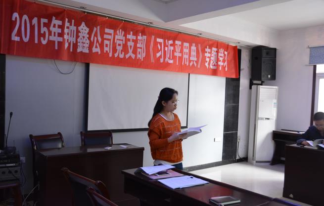 近期,公司全體黨員都以自我學(xué)習(xí)的方式進(jìn)行了《習(xí)近平用典》的學(xué)習(xí),為進(jìn)一步加強(qiáng)黨員對《用典》的理解,鐘鑫公司于10月9日組織公司全體黨員在大會議室政開展“2015鐘鑫公司黨支部《習(xí)近平用典》專題學(xué)習(xí)”。 首先由主持人宣讀“關(guān)于開展《習(xí)近平用典》專題學(xué)習(xí)的通知”,并對《習(xí)近平用典》一書進(jìn)行介紹,這本書從習(xí)近平總書記數(shù)百篇講話和文章中遴選出使用頻率高、影響深遠(yuǎn)、最能體現(xiàn)習(xí)總書記治國理政理念的典故135則,分敬民、為政、修身、任賢、天下、法治等13個篇章,并對習(xí)近平總書記引用的每則典故,在解讀部分闡述了用典的現(xiàn)實意義,釋義部分詮釋了古典名句的出處和深邃的寓意。