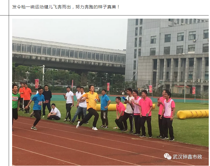 ? ?2019年4月30日,值五四青年節(jié)來(lái)臨之際,為激發(fā)職工運(yùn)動(dòng)熱情,展現(xiàn)市政青年昂揚(yáng)向上的精神風(fēng)貌,漢陽(yáng)市政集團(tuán)公司在漢陽(yáng)區(qū)全民健身中心田徑場(chǎng)成功舉辦了“喜迎軍運(yùn)會(huì) ?激揚(yáng)青春 ?職工運(yùn)動(dòng)會(huì)”。