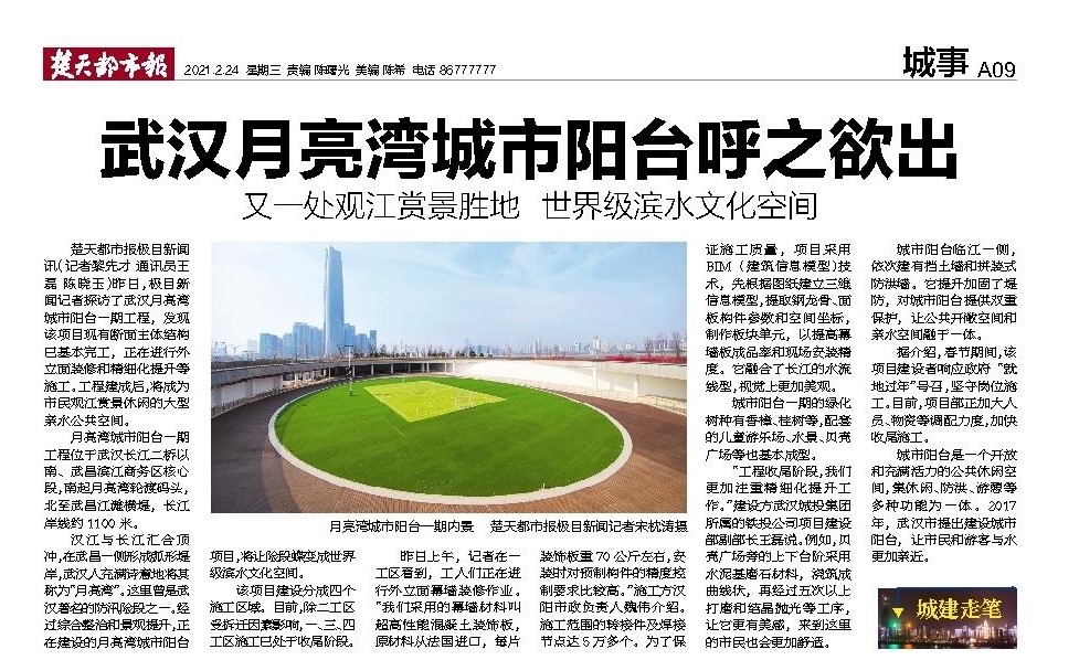 月亮灣城市陽臺(一期)施工項目位于武漢長江二橋以南、武昌濱江商務(wù)區(qū)核心段,南起月亮灣輪渡碼頭,北至武昌江灘橫堤,整體包含四個工區(qū)的建設(shè)任務(wù),目前一、三、四工區(qū)建設(shè)已處于收尾階段,接下來將抓緊進(jìn)行外立面裝修和精細(xì)化提升等工作。